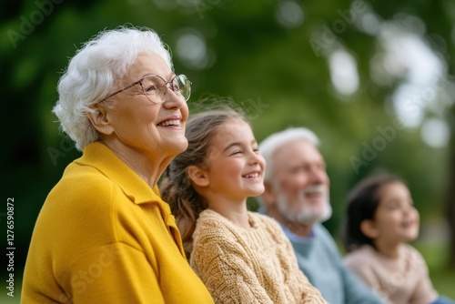 family, grandparent, grandchild, park, happy, together, smiling, generation, connection, joy, sunny day, children, leisure, recreation, nature, wellness, community, belonging, relationship, bonding, daylight, tree, greenery, casual clothes, relaxation, companionship, support, love, cherish, bequest, inheritance, ancestry, root, identity, future, youth, wisdom, ageing, maturity, innocence, wonder