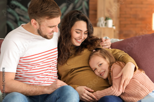 abdomen, adult, await, baby, background, beautiful, belly, birth, bonding, care, caucasian, children, daughter, hugs, enjoy, expecting, family, father, female, future, girl, happiness, happy, home, hugging, children, leisure, little, love, male, man, maternity, mother, eltern, people, person, portrait, pregnant, antenatal, rest, resting, room, sitting, sofa, together, woman, young