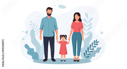 family, happy, mother, father, daughter, children, together, love, portrait, parenthood, childhood, togetherness, illustration, vector, character, cartoon, people, cute, family time, human relationships, bonding, man, woman, girl, standing, holding hands, modern, simple, care, support, happy family