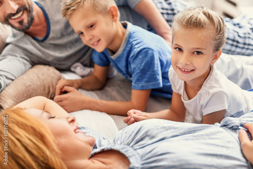 cropped, photo, cute, little, girl, lie, bed, family, look, smile, happy, young, together, spend, time, mother, father, play, son, home, happily, daughter, fun, morning, relax, children, lifestyle, children, childhood, house, weekend, domestic, indoor, brother, male, woman, loving, bond, portrait, boy, hug, man, relationship, relative