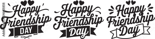 Happy Friendship Day Typography set with Ribbon and Heart Silhouette Design
