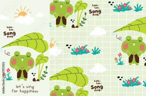 happy frog hand drawn la la song vector set