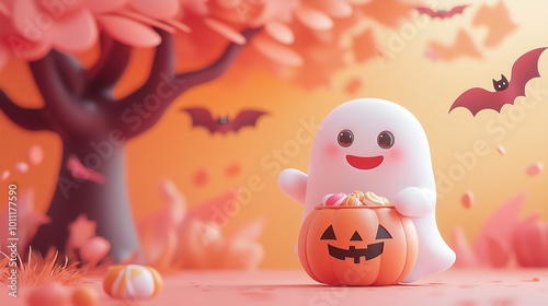 ghost, smiling, candy, bucket, halloween, autumn, playful, cute, cartoon, character, pumpkin, cheerful, festive, sugar, treat, seasonal, colourful, decoration, skittish, fun, orange, tree, bat, happy, children, party, celebration, joy, harvest, animation, art, whimsical, fantasy, vibrant, design, creative, holiday, imagery, background, landscape, adorable, sweet, spirit, children, gathering