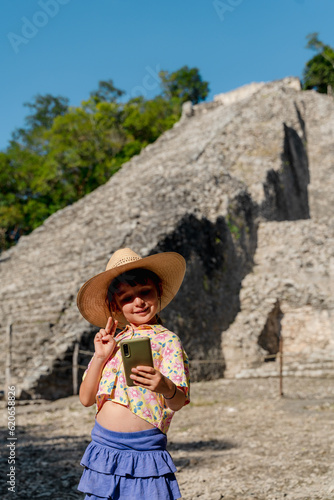 ancient, archaeology, attraction, camera, cheerful, copy space, copy space, culture, cute, destination, explore, explorer, face, famous, fun, happy, hat, historic, history, holiday, lifestyle, maja, mexican, mexico, mobile, mobile phone, outdoors, phone, photo, portrait, pyramid, self, selfie, signs, smartphone, stylish, sunhat, taking, technology, tour tourism, holiday maker, travel, tropical, vacation, victory, yucatan