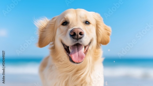 Happy Golden Retriever Dog at the Beach Summer Fun Pet Portrait