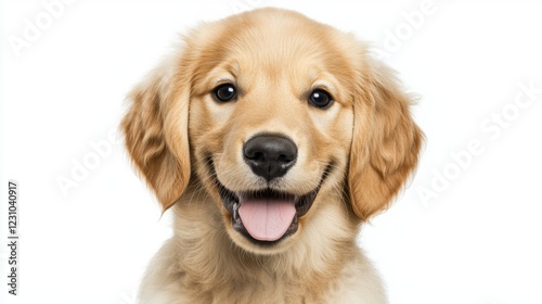 Happy Golden Retriever Puppy with Playful Expression on White Background
