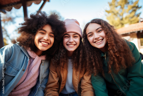 Happy group of teens hanging out together in group.