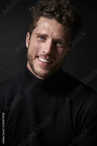 portrait, face, photogenic, young, person, black, casual attire, people, guy, man, looking, beard, hair, serious, eye, white, head, expression, smiling, boy, shirt, happy, dark, human, model