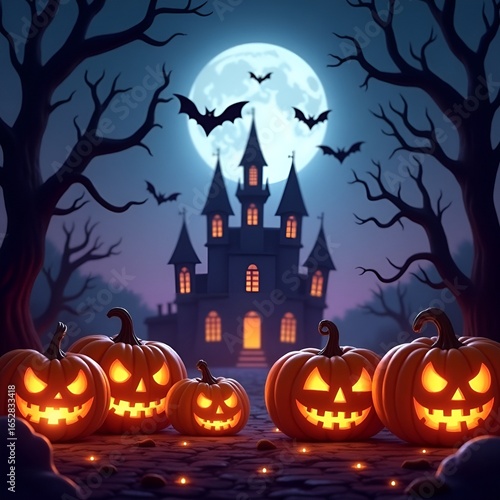 Happy Halloween Holiday Background with Festive Pumpkins and Copy Space