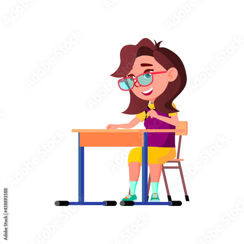 happy intelligence girl make exercise in classroom at desk cartoon vector. happy intelligence girl make exercise in classroom at desk character. isolated flat cartoon illustration