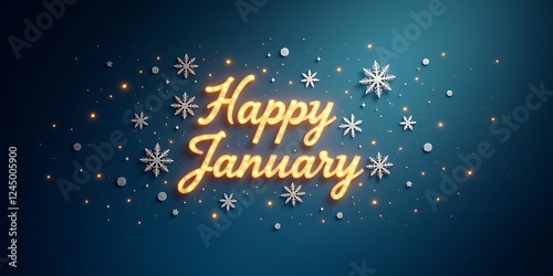 jan, happy, new, year, winter, snowflake, festive, greeting, celebration, holiday, season, december, christmas, snow, ice, cold, wintery, glacé, chilly, frosty, illuminated, glowing, bright, shiny, sparkling, glistering, light, gold, yellow, blue, dark, background, design, graphic, image, digital, art, illustration, three-dimensional, rendering