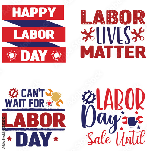 Happy Labor Day Colorful Design Bundle on White Background. Print Ready Labour Day Graphics Template for Clothing and Garments Industry.