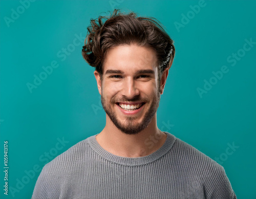 man, happy, smiling, head, positive, studio, fun, laugh, person, fashion, confident, enjoy, adult, joy, confidence, portrait, man, copy space, background, success, style, cheerful, face, grey, green, smile, male, photogenic, people, young, happiness, head shot, joyful, guy, friendly