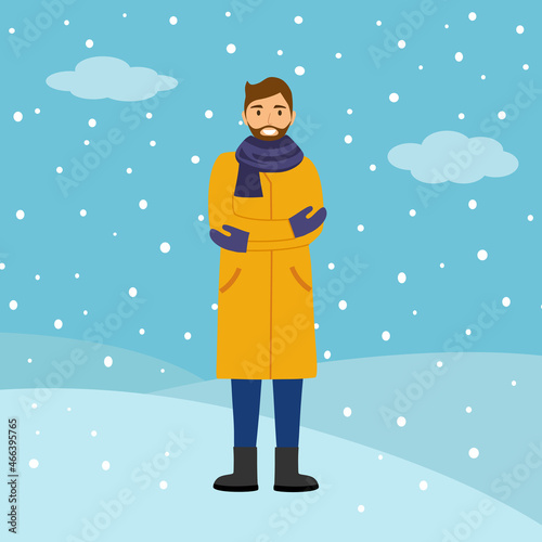activity, adult, character, christmas, climate, clothes, clothing, coat, cold, cosy, december, fahrenheit, forecast, freeze, fresh, frost, frosty, guy, happiness, happy, hat, holiday, illustration, jacket, joy, joyful, male, man, new year, outerwear, foulard, season, seasonal, smile, snow, snowfall, snowflake, winter storm, snowy, sweater, temperature, holiday maker, vacation, warm, weather, winter, winter scene