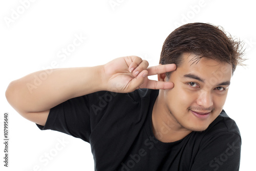 white, signs, male, face, gesticulate, human, person, young, cute, asian, peace, happy, show, hand, body, smiling, smile, side, man, people, gesture, arm, shirt, model, photogenic, guy, casual attire, confident, posture, dude, philippines