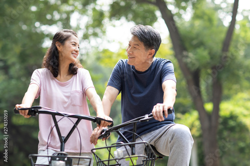 park, bicycle, riding, cycling, cheerful, close to, well-being, retirement, couple, husband, wife, people, two people, asian ethnicity, mature adult, exercising, sport, bodycare, vitality, cycle, togetherness, relaxation, healthy lifestyle, well-being, tree, plant, day, outdoors, morning, looking away, smiling, toothy smile, china, asia, front view, face to face, environmental conservation, woman, man, summer, adult