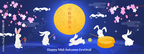 Happy Mid autumn festival vector banner design. Chinese translate: Mid Autumn Festival - Vector