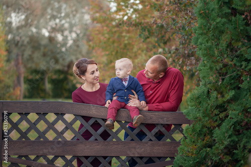 Happy mother, father and son in the park. Happiness in family life in summer day