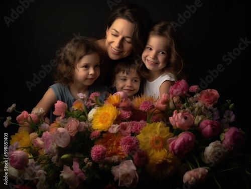 Happy mother's day. A heartwarming depiction of a mother and her children on Mother's Day. Generative AI
