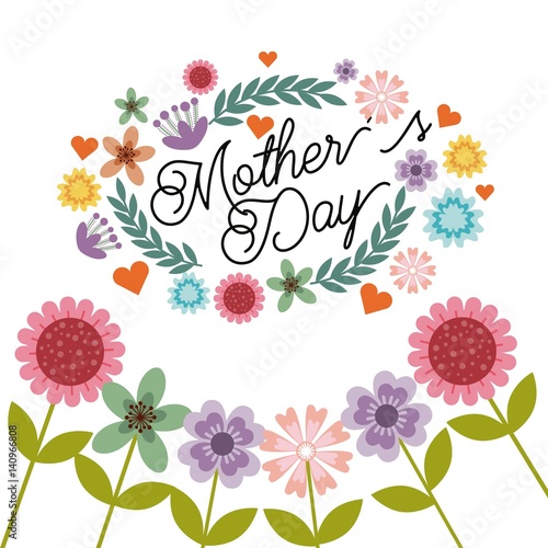 happy mother's day card with flowers over white background. colorful design. vector illustration