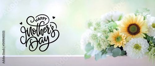 mother's day, flower, sunflower, daisy, greeting card, floral, bouquet, happy, celebration, spring, summer, pastel, background, design, card, image, mother, love, appreciation, family, mother, holiday, spring flower, summer flowers, yellow flower, white flower, greenery, elegant, delicate, soft, pretty, beautiful, vibrant, cheerful, festive, romantic, tender, heartfelt, typography, lettering, calligraphy, text, message, wishes, greeting, mother, floral arrangement