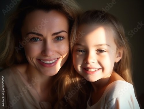 Happy Mother's Day. Mather and daughter smiling happily.