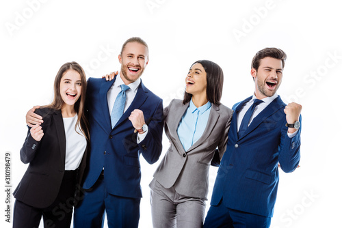 beautiful, happy, business, smiling, woman, happiness, success, cheerful, caucasian, smile, girl, european, man, emotion, corporate, emotional, together, togetherness, celebrate, attractive, photogenic, positive, laugh, winner, excited, excitement, succeed, successful, gesture, yes, confident, businessman, businessperson, executive, triumph, yeah, businesswoman, suit, multicultural, rejoice, manager, isolated on white, studio shot, young adult, black woman, african american, four people