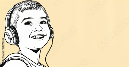 earphones, music, listening, solitude, illustration, black-and-white, smile, smiling
