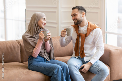 couple, muslim, hot drink, drink, family, arab, enjoy, home, flirt, talk, modern, dating, human relationships, sitting, together, islamic, young, man, headscarf, concept, house, islam, male, 2, smile, person, female, people, adult, love, arabic, background, indoor, married, girlfriend, boyfriend, lifestyle, wife, woman, casual attire, sofa, husband, tea, conversation, cup, hold, happy