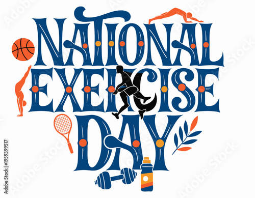 Happy National Exercise Day Vector, Running, Yoga, and Workout Concept Illustration