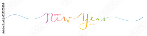 happy new year, happy, new, year, banner, card, 2019, 2018, holiday, merry, christmas, brush, calligraphy, hand, lettering, ornament, decoration, script, vector, celebration, party, icon, symbol, type, typography, calligraphic, typographic, text, word, cursive, drawn, family, idea, thanksgiving, colourful, watercolor, rainbow