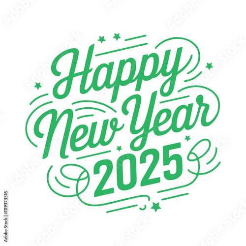 happy new year, 2025, typography, calligraphy, holiday greeting, holiday season, vector, signs, text, illustration, design, symbol, green, year, holiday, christmas, day, new, card, decoration, happy, art, patrick, celebration, sale