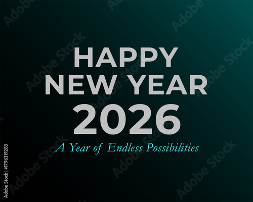 Happy New Year 2026 Teal Gradient Greeting