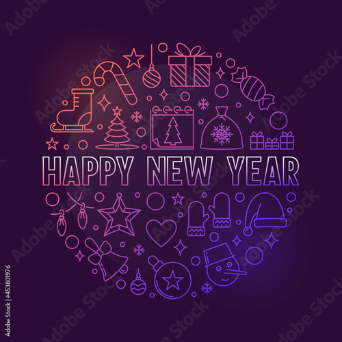 Happy New Year circular vector colored outline illustration