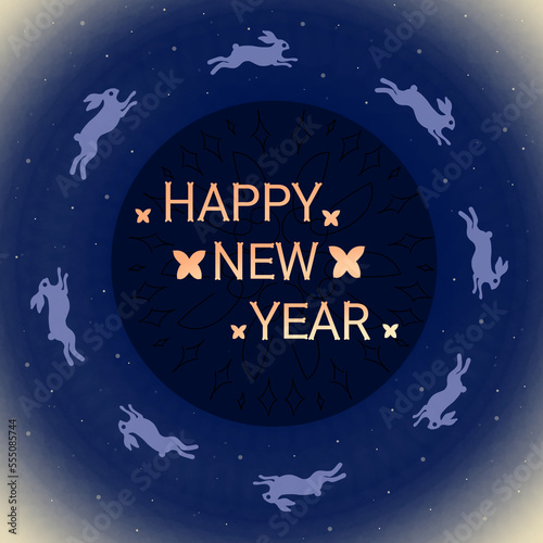Happy new year, rabbit gradient dark blue background. chinese new year, the year of the rabbit