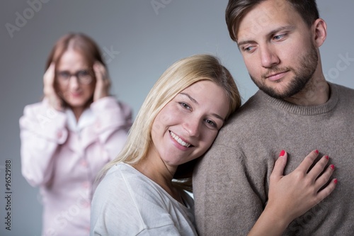pair, love, mother, family, female, mother-in-law, caucasian, difficulty, care, eltern, daughter, daughter-in-law, son-in-law, son, husband, wife, marriage, married, couple, young, mature, good, bad, caring, protective, motherly, nosey, mean, jealousy, envy, support, man, woman, nosiness, picture
