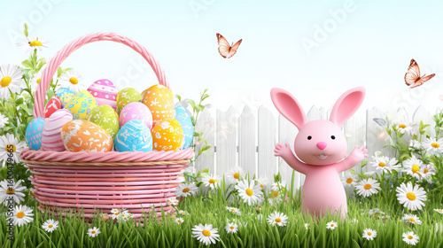 easter, rabbit, rabbit, pink, cute, cartoon, basket, egg, colourful, garden, spring, flower, butterfly, greengrass, festive, happy, joyful, cheerful, childlike, sweet, innocent, animal, wildlife, nature, bloom, floral, springtime, decoration, children, children, fun, season, celebration, sugar, confectionery, snack, dessert, illustration, graphic, art, digital artwork, animated, character, adorable, playful, gentle, holiday, traditional