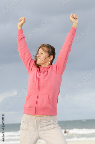 positive, woman, pretty, relaxed, active, activity, age, aged, isolated, confident, arm, attractive, autumn, beautiful, beauty, blurred background, breeze, casual attire, cold, confidence, copy space, dark clouds, day, direction, happiness, female, fit, freezing, fun, hair, hand, happy, joy, leisure, lifestyle, look, mature, mood, nature, optimism, optimistic, outdoors, pointing, portrait, red, relaxing
