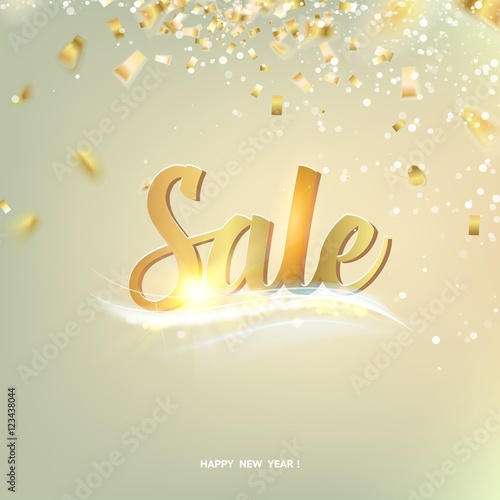 Happy Sale card over gray background with golden sparks. Vector illustration.