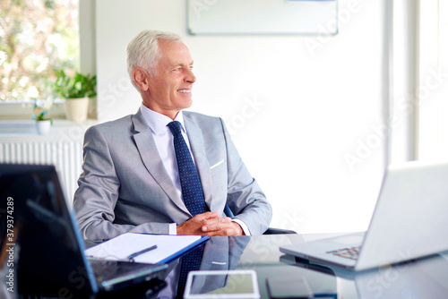 Happy senior businessman sitting in the office