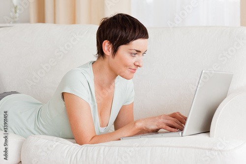browsing, brunette, business, entertainment, happiness, model, modern, notebook, relax, adult, attractive, beautiful, beauty, casual attire, caucasian, charming, comfortable, computer, enjoy, female, fun, girl, happy, home, house, indoor, cyberspace, joy, laptop, learning, leisure, life, lifestyle, living, looking, 1, people, person, pleasure, pretty, room, sitting, smile, sofa, technology, typing, white, woman, work, young
