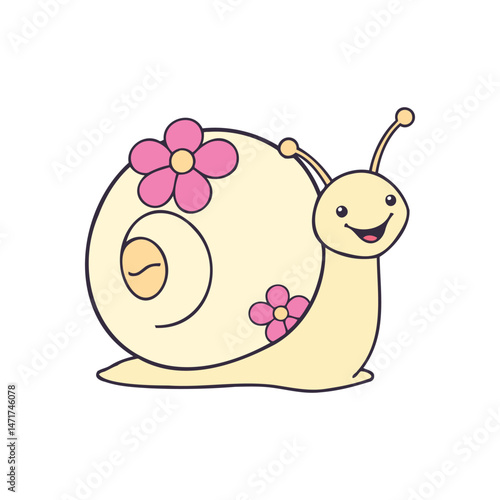 snail, cartoon, animal, vector, adorable, children, illustration, decorative, character, childish, floral, pink flower, whimsical, cheerful, lovely, spring, playful