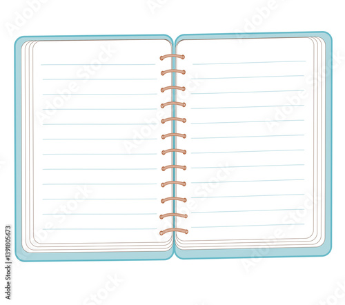notebook, spiral, paper, line, study, school, writing, journal, note, stationery, blank, book, page, blue, white, open, student, supply, planner, vignetting, cartoon, learning, education, tool, memo, office