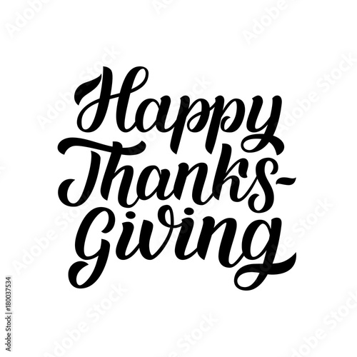 Happy thanksgiving brush hand lettering, isolated on white background. Calligraphy vector illustration. Can be used for holiday type design.