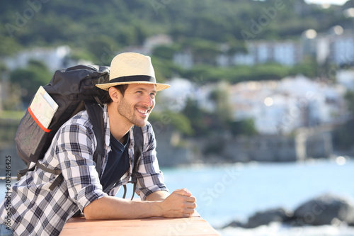 holiday maker, travel, trip, sightseeing, contemplating, contemplation, looking, away, plan, vacation, man, hotel, smiling, people, landmark, ocean, seeing, sea, get-away, happy, searching, place, baggage, backpacker, backpack, summer, holiday, journey, beach, 30s, adult, guy, male, tour tourism, apartment, balcony, coast, town, house, holiday, traveling, traveler, funny, single, hostel, street, fun, look, bag, concept