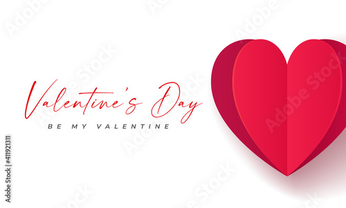 Happy Valentine's Day banner. Holiday background design with big heart made of red and pink Origami Hearts. Horizontal poster, flyer, greeting card, header for website