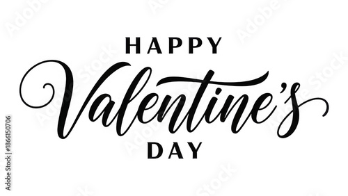 Happy valentines day greeting card with elegant black typography on transparent background
