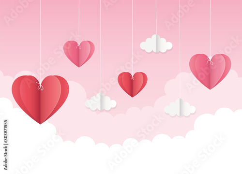 happy, valentine, day, origami, hanging, heart, cloud, card, background, nubes, vector, illustration, romantic, paper, valentine, love, cloud, greeting, celebration, art, romance, decoration, pink, graphic, red, poster, shape, creative, sky, beautiful, template, craft, cut, style, cute