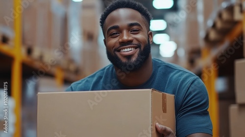 warehouse, men at work, man, black, african, american, male, smiling, happy, box, cardboard, box, cardboard box, shipping, delivery, logistic, industry, business, professional, teamwork, service, client, success, hard work, dedication, positive, motivated, confident, strong, accurateness, efficiency, productivity, stock, inventory, freight, transportation, distribution, fulfillment
