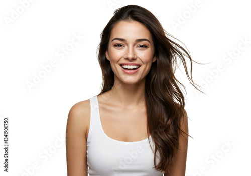 woman, beauty, hair, model, brunette, person, fashion, smile, face, people, smiling, teenage, 1, lady, dress, teenage, studio, happiness, casual attire, cute, expression, skin, glamour